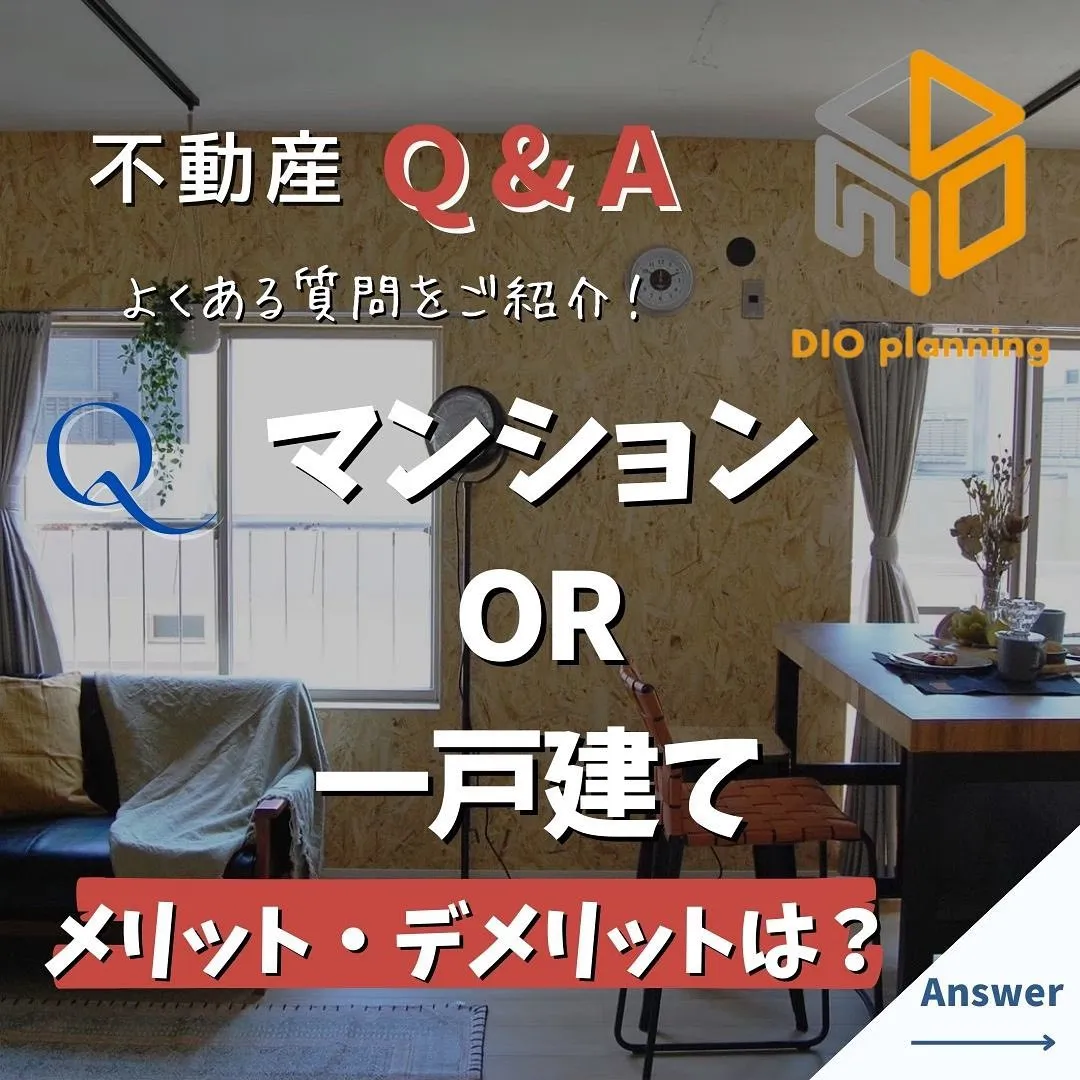 【不動産Q & A 】Q. 『マンション OR 一戸建て』メ... 【不動産Q&A】Q.『マンションOR一戸建て』メリット・デメリットは?マンションや一戸建て・お土地など不動産のご購入に際し、お客様からよくあるご質問とその回答をQ&A形式でご紹介💡不動産の売却、購…