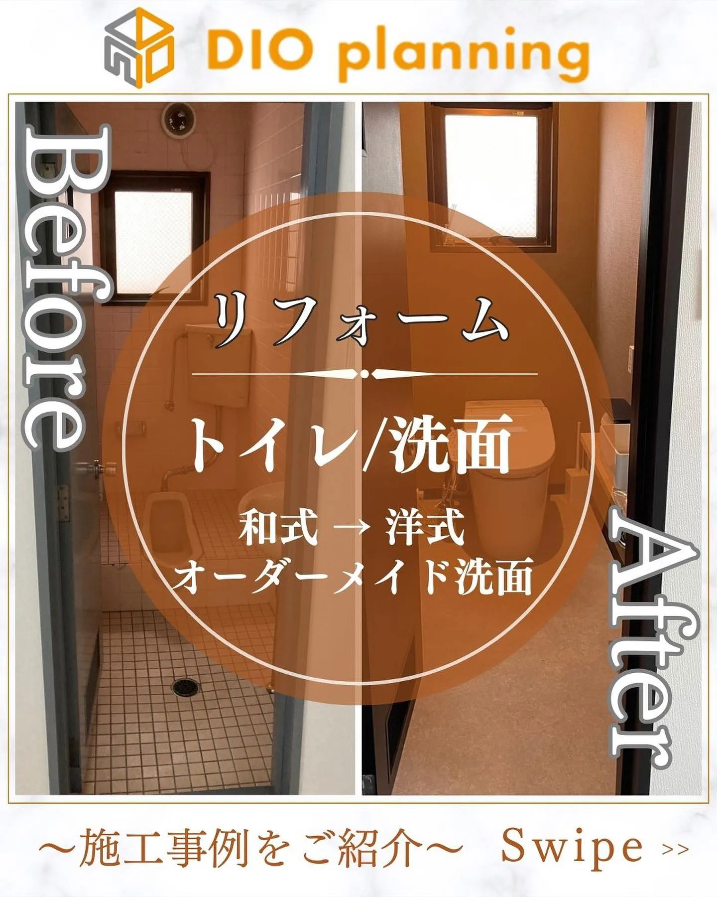 【事例紹介】今回は事務所のトイレリフォーム事例となります。 【事例紹介】今回は事務所のトイレリフォーム事例となります。改装前は和式タイプで壁はタイル貼りでしたが、タンクレスの洋式トイレ&グレーの壁紙に貼り替えさせて頂きました!また同時に手洗いも良いサ…